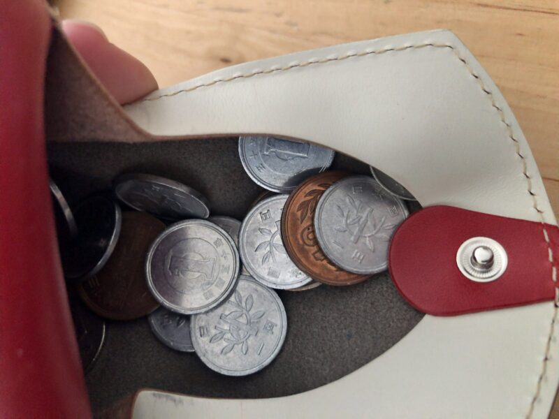 特徴的な小銭入れですが、最初は出し方をミスってこぼれてしまうことがありましたが、コツを掴むとめちゃくちゃ取り出しやすいです。レジで後ろに人が並んでいても安心して小銭で支払うことができます。