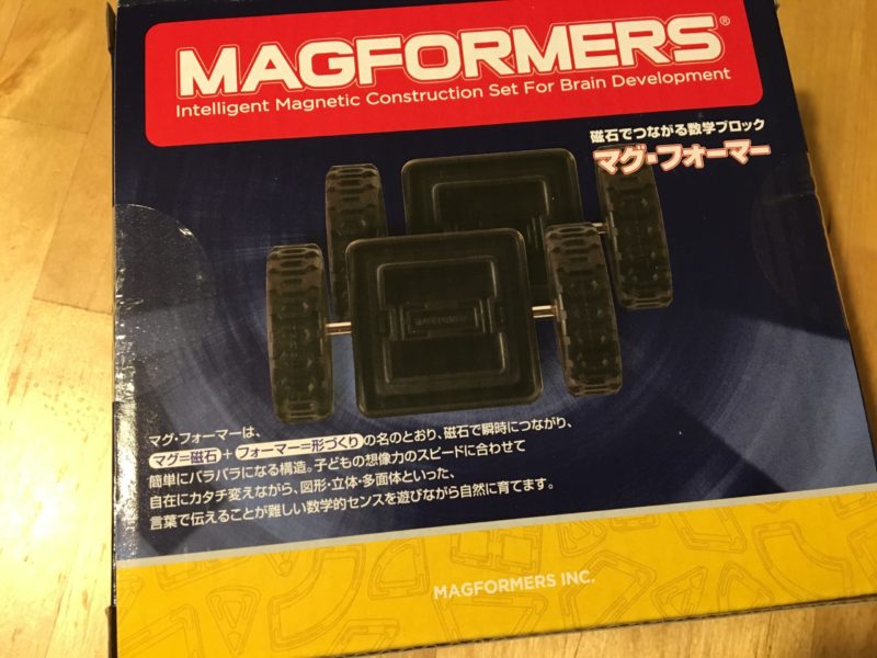 マグフォーマーというおもちゃがあります。磁石が仕込まれたブロックで、うちにも下記のセットがあります。
