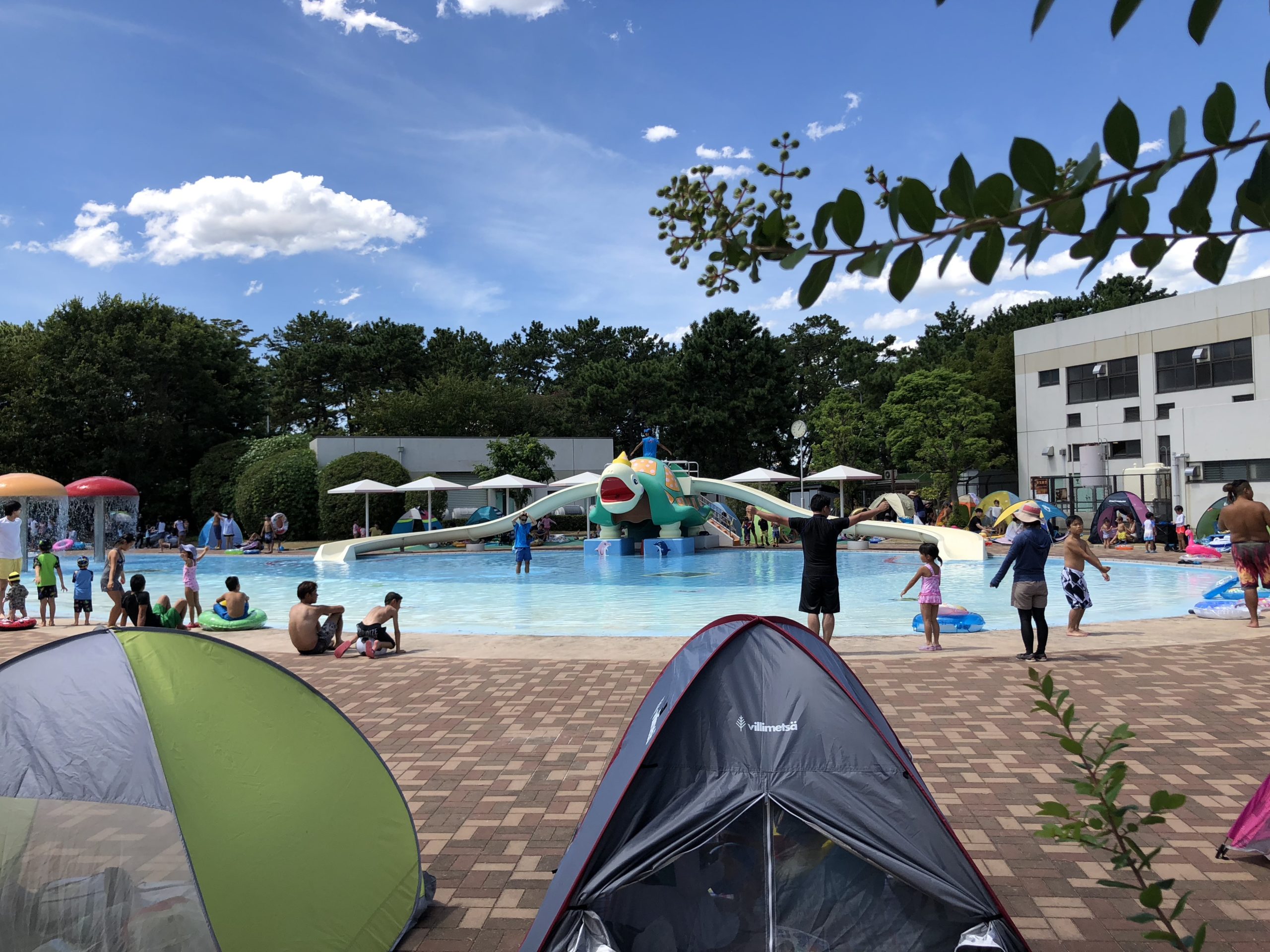プール自体はテント・タープが禁止ですが、サンシェードテントはOKというわけのわからないルールなので、サンシェードは持っていっても良いかと思います。